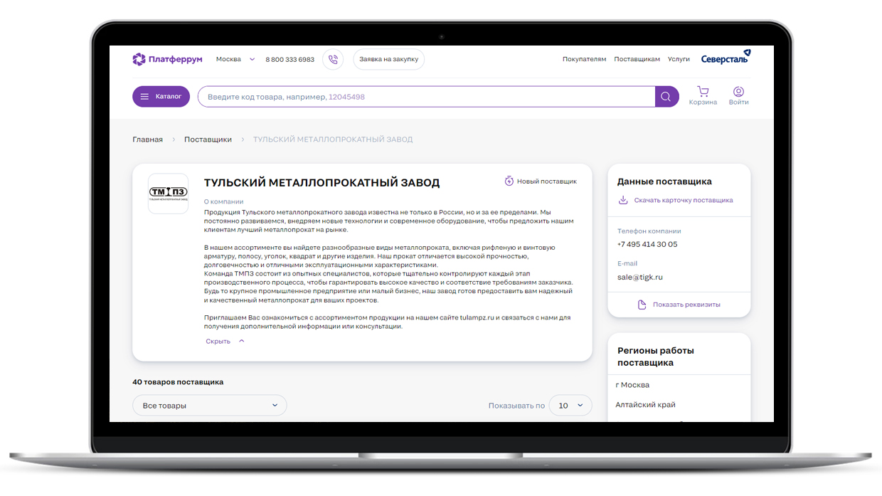 Platferrum.ru — это уникальная платформа, разработанная компанией Северсталь, объединяющая различных поставщиков и покупателей металлопроката. Маркетплейс предоставляет удобное пространство для проведения онлайн-сделок и обмена информацией между участниками рынка.