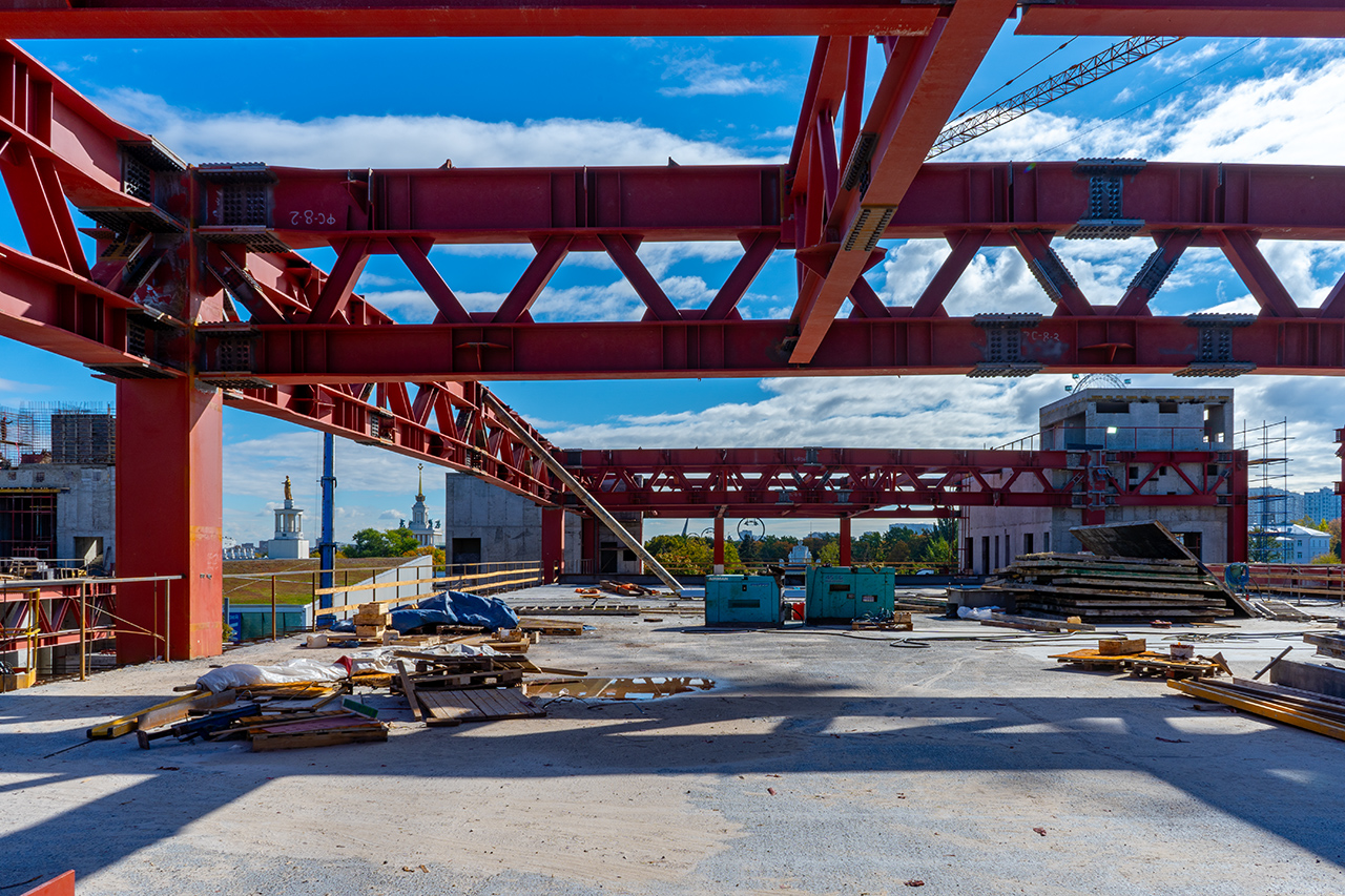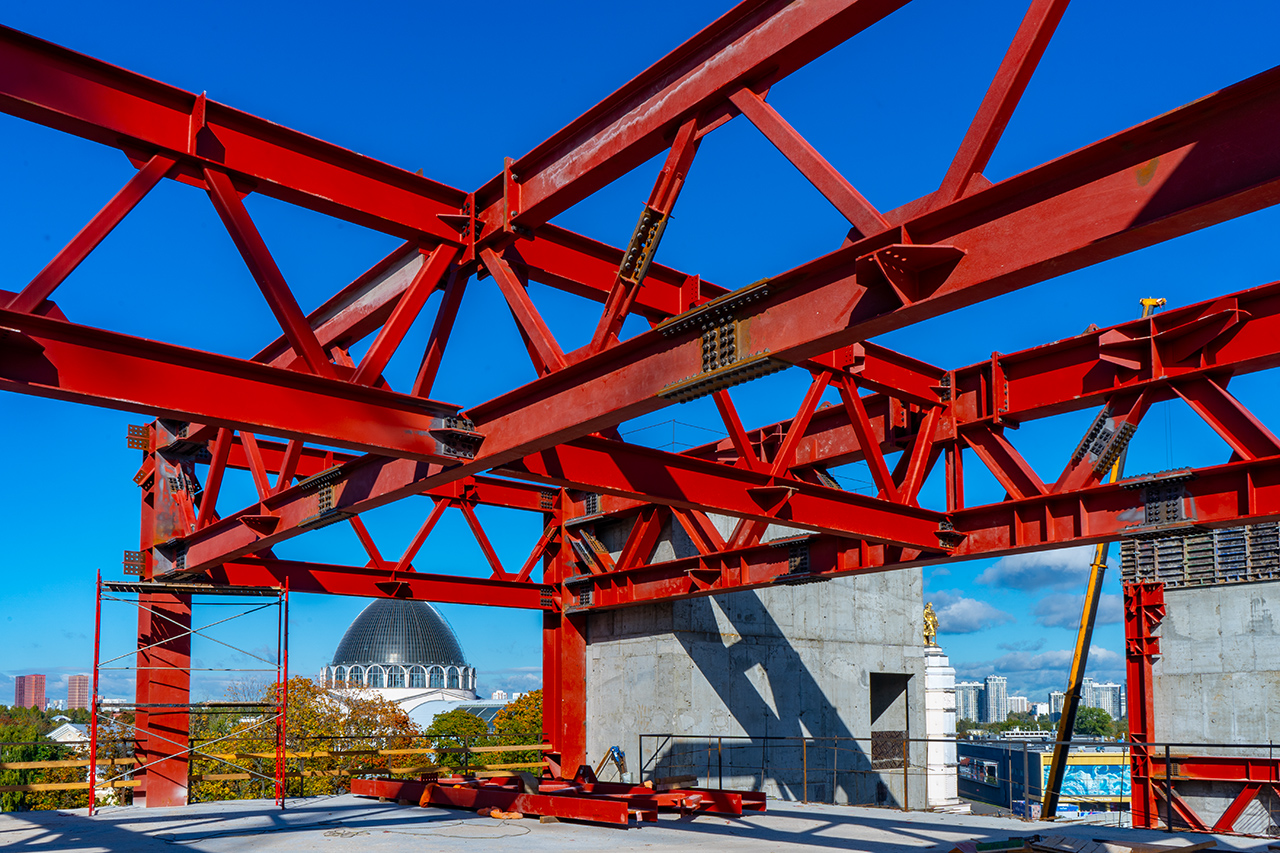 Работы подходят к финишу: монтаж металлоконструкций павильона № 20 на ВДНХ выходит на завершающую стадию.