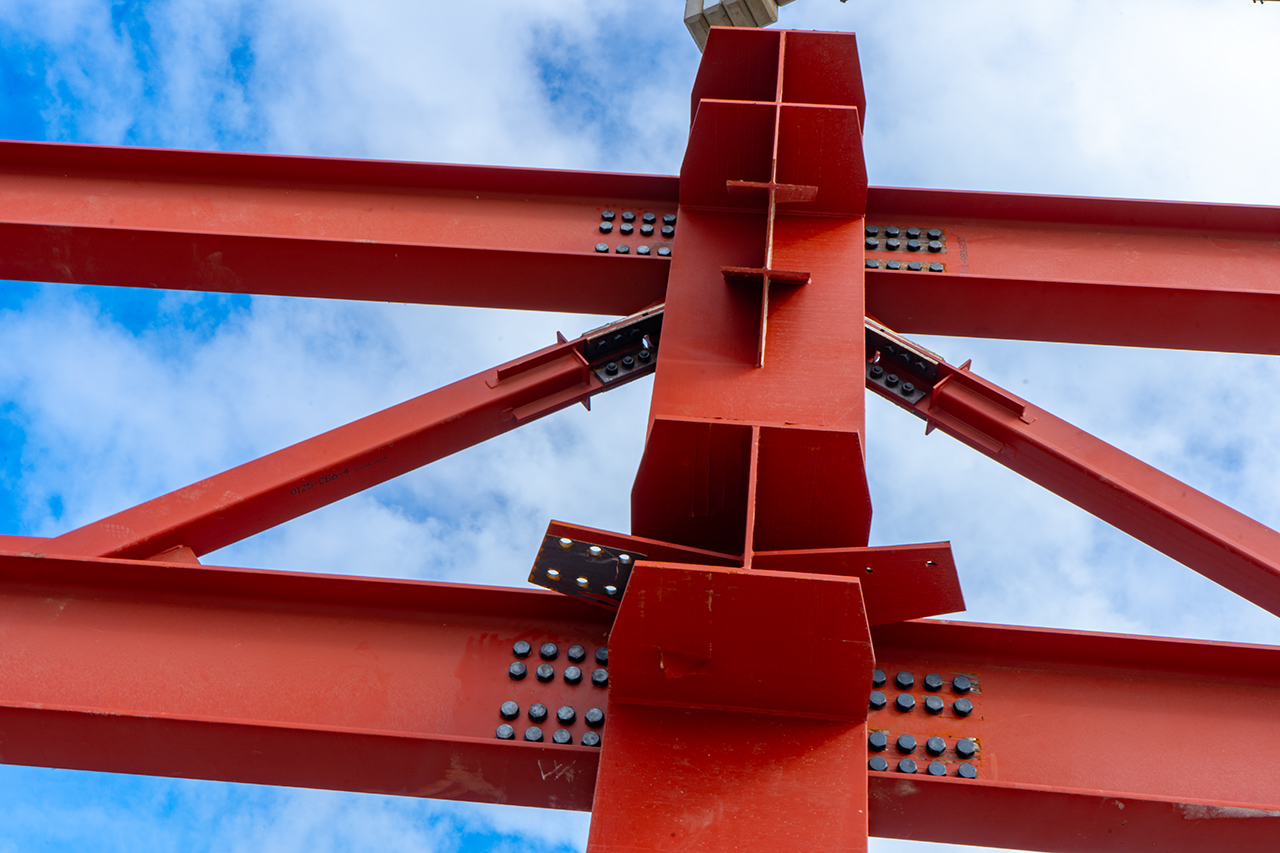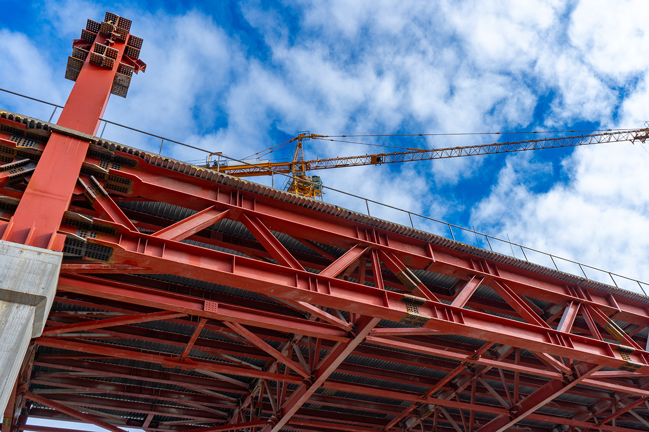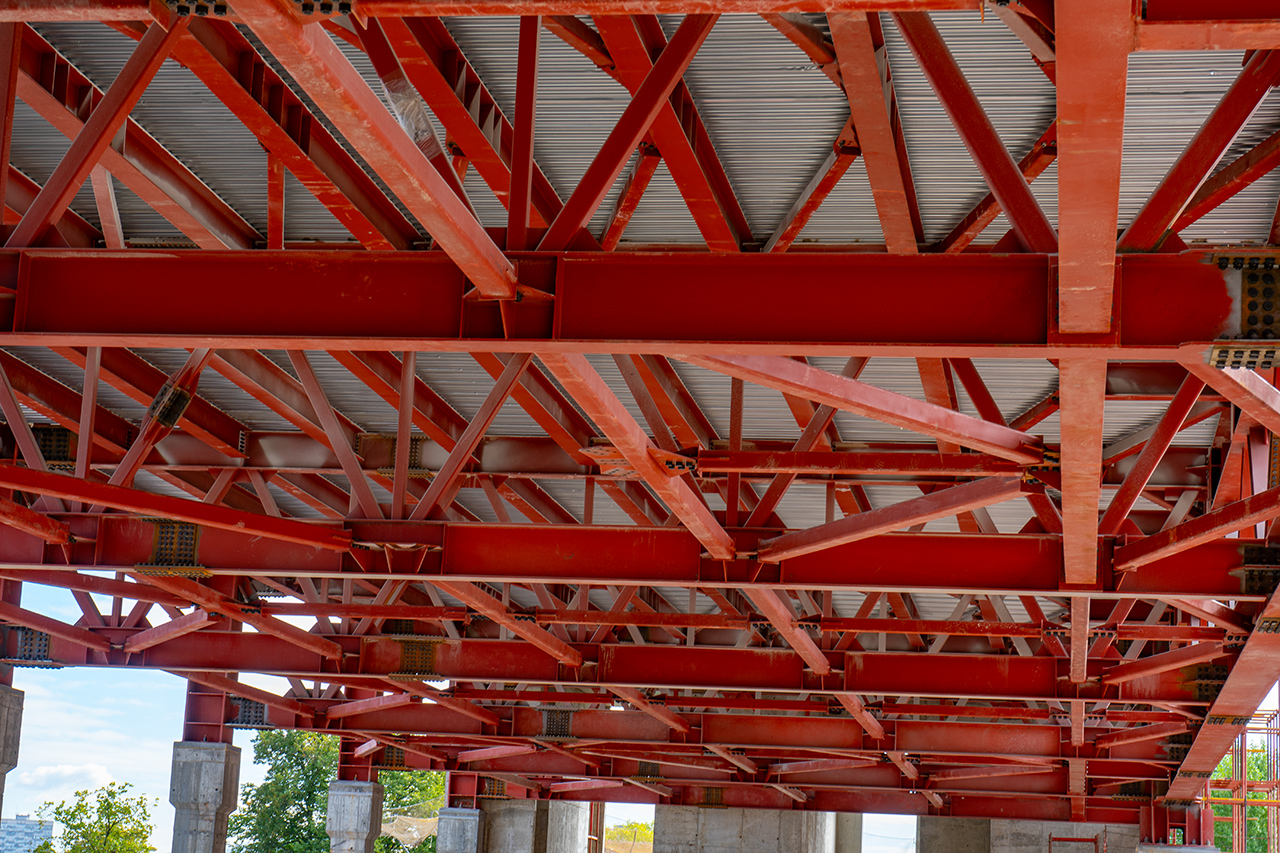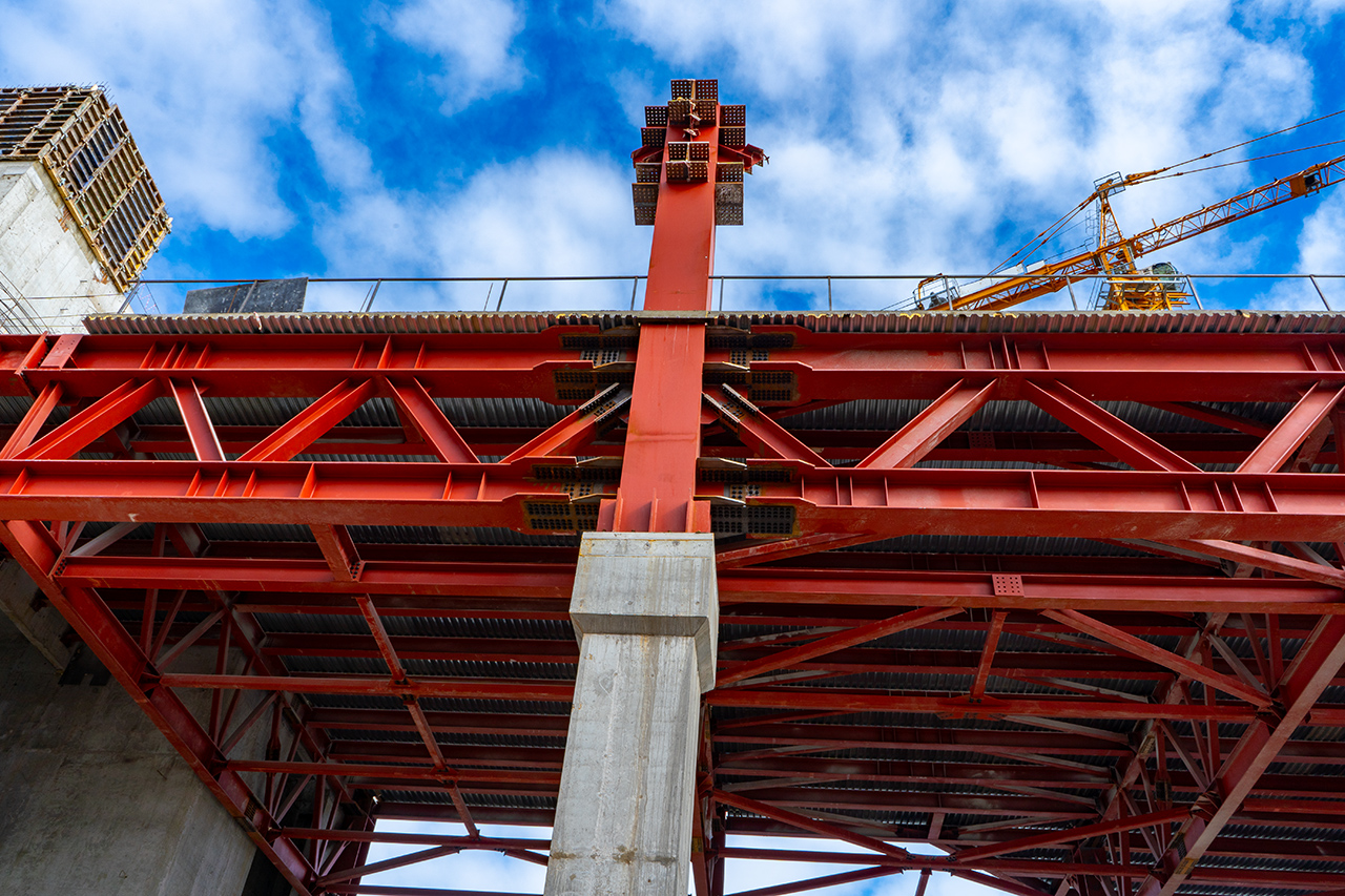Конструкции для объекта изготавливаются на Тульском металлопрокатном заводе. Часть из них уже смонтирована на площадке, оставшиеся партии находятся в производстве и будут доставлены в ближайшее время.За последние дни установлены последние крупногабаритные элементы: колонны коробчатого сечения весом до 30 тонн, а также поперечные связи и прогонные балки. Это завершение основного каркаса создает прочный “скелет” здания, готовый к следующему этапу — возведению наружных стен и фасадных систем.